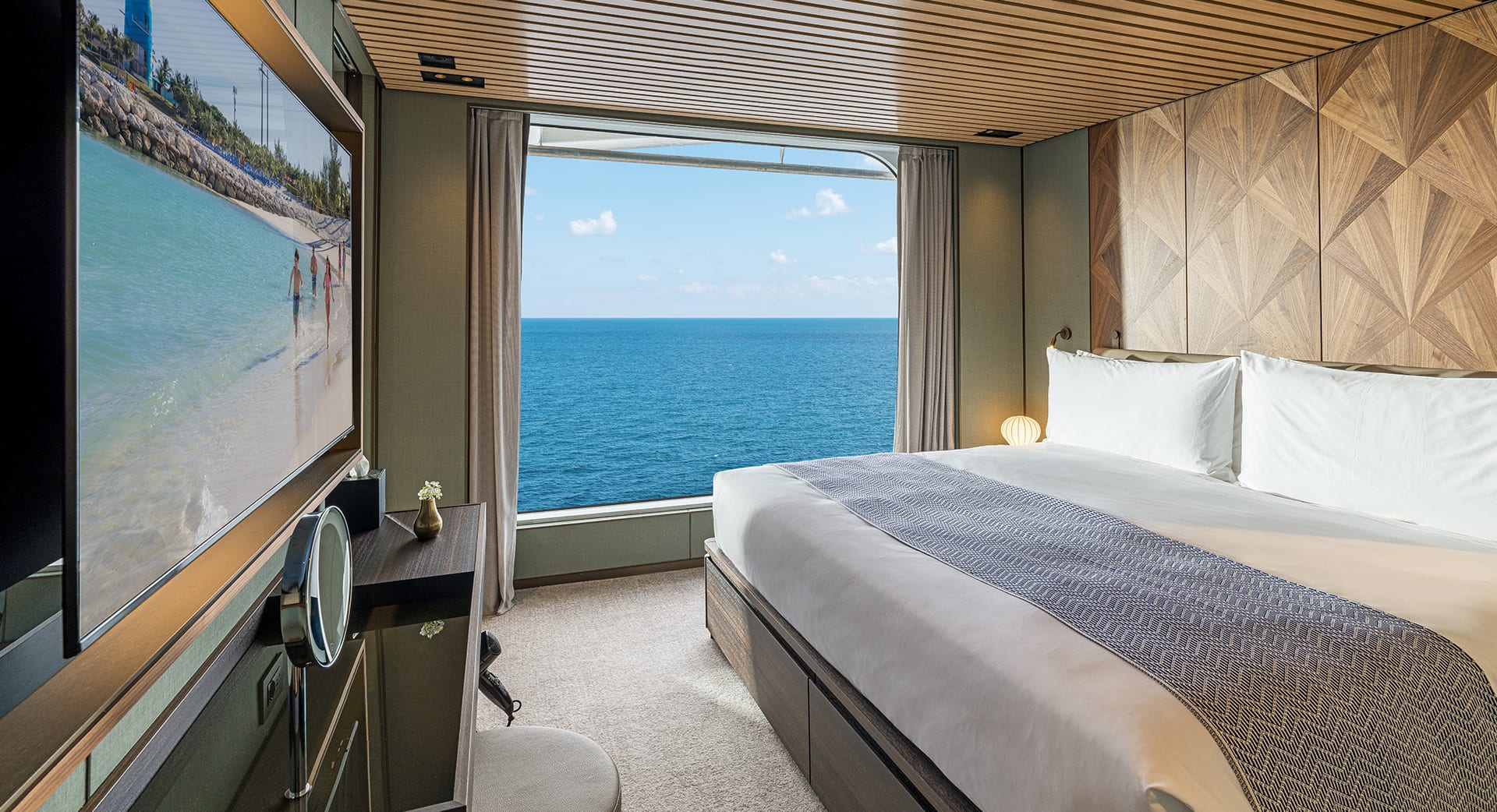 Te damos la bienvenida a tu hogar en alta mar, con el alojamiento más amplio de todos. Ya sea que quieras renovarte, descansar o relajarte con un exquisito servicio a la habitación, ahora tendrás más espacio para hacerlo.