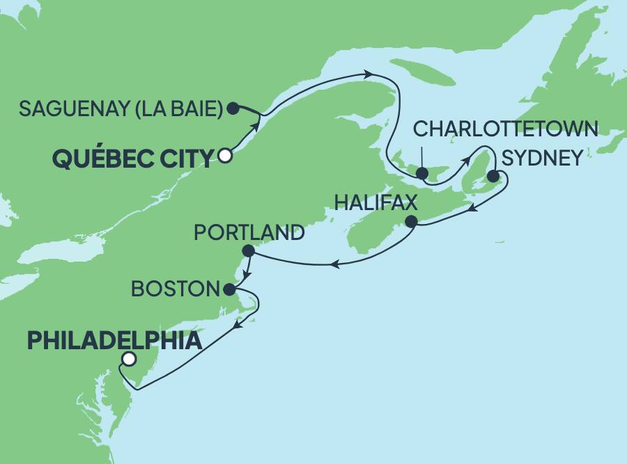 Descubre todo lo que el mundo tiene para ti en este inolvidable viaje de 10 días, de Quebec a Filadelfia a bordo del Norwegian Pearl®. Camina por el centro de Charlottetown, un lugar de ensueño en la Isla del Príncipe Eduardo. Disfruta de las vistas de la costa rocosa de Halifax y su puerto natural, el segundo más grande del mundo. Saborea una auténtica langosta de Maine en uno de los encantadores restaurantes, en el animado paseo costero de Portland. Luego, sigue el Freedom Trail (Camino de la Libertad) en Boston y prueba la cerveza en algunas de las tabernas históricas que encontrarás en el camino. Cuando llegues a Filadelfia, no olvides probar un auténtico Philly Cheesesteak, tan icónico como la Campana de la Libertad.