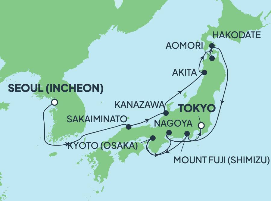 Descubre un puerto nuevo en casi todos los días de tu crucero a Asia.