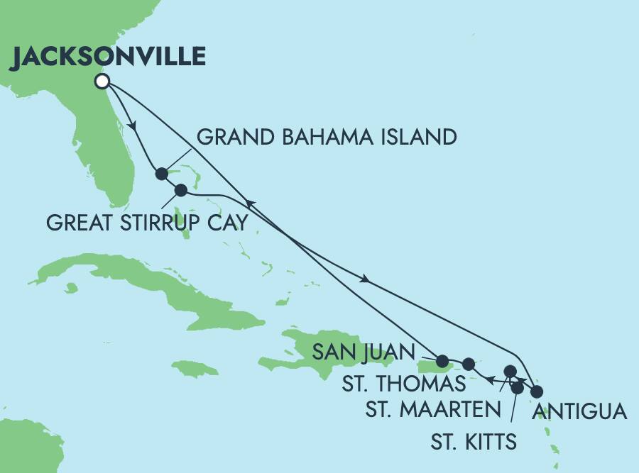 Ven a descubrir un paraíso invernal diferente en el Caribe con Norwegian. Luego, bucea entre coloridos peces tropicales y tortugas marinas verdes en Turtle Cove, en Santo Tomás. Súbete a un catamarán de 5 estrellas en Philipsburg y recorre la increíble costa de la isla mientras el personal de la embarcación te sirve un almuerzo gourmet mientras disfrutas de un bar abierto y vistas fantásticas. En nuestra isla privada, Great Stirrup Cay, podrás relajarte en una lujosa villa privada ubicada a orillas de nuestra exclusiva laguna y disfrutar de una sesión de masajes en el Mandara Spa.