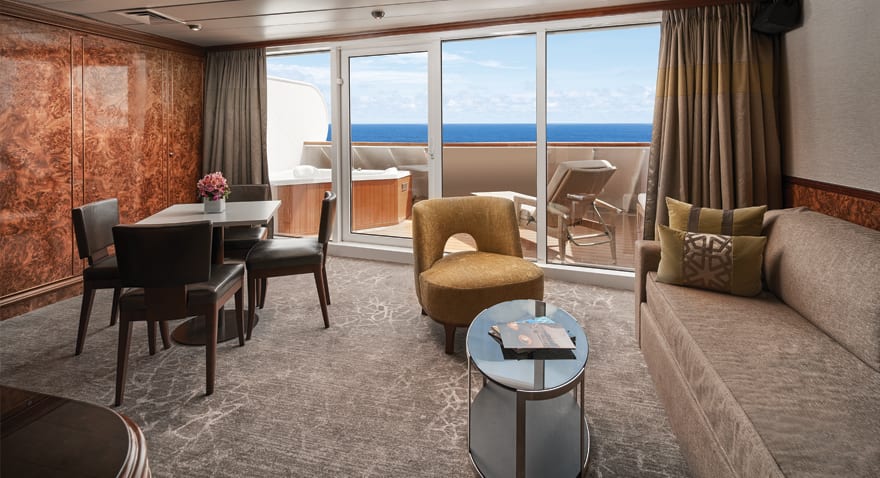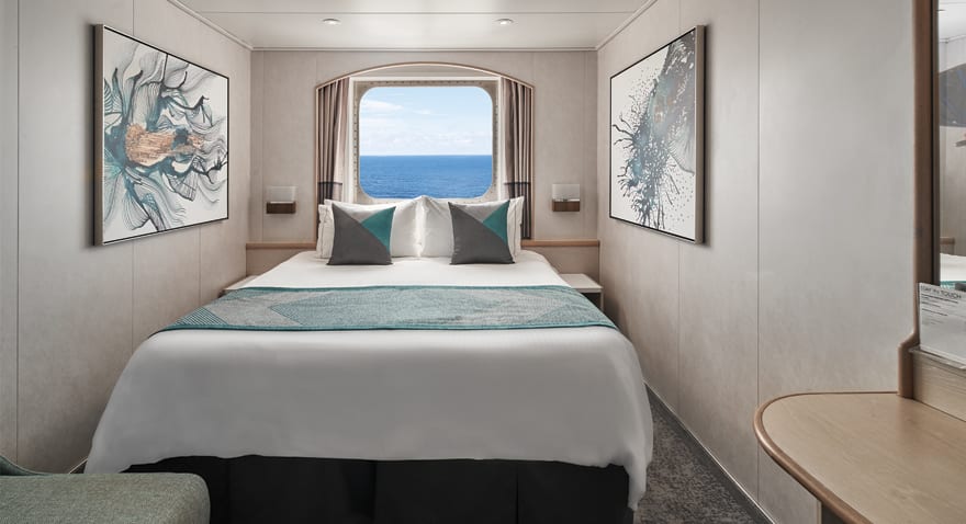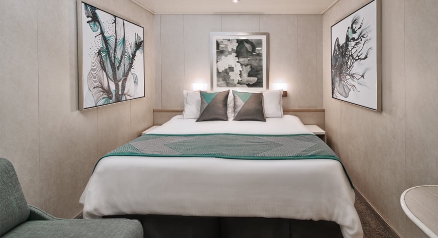 Deléitate con la tranquilidad y amplitud en alta mar con nuestras impresionantes suites lujosas e innovadoras que ofrecen solo el mejor equipamiento por donde las mires. Los ventanales del piso al techo en nuestros camarotes con balcón privado son perfectos para los amantes del sol y observadores de estrellas. Nuestros camarotes con vista al mar y camarotes interiores son cómodos y están bien decorados, donde podrás recostarte al final del día o descansar por las mañanas.