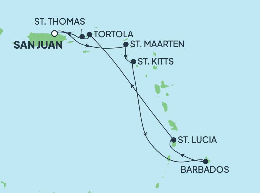 Zarpa desde San Juan, una ciudad llena de colores vibrantes y ritmos isleños, en un viaje de 7 días por el Caribe. Desde Philipsburg, navega en kayak por Simpson Bay Lagoon en un tour guiado que te permitirá ver árboles del manglar, iguanas y una atractiva fauna marina. Continúa hacia Bridgetown, Barbados, un lugar lleno de ritmo y color donde podrás ver el area histórica de la Guarnición, disfrutar de un buen ron local o relajarte en playas doradas bañadas por olas turquesas. Disfruta de las vistas panorámicas a lo largo de la autopista Sir Frances Drake de Tórtola y descubre las pintorescas villas.