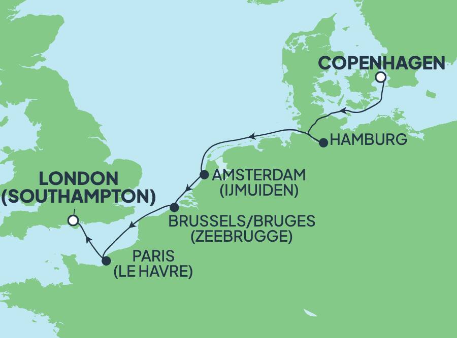 Descubre un puerto increíble casi todos los días de tu crucero por Europa a bordo del Norwegian Star®. Aprovecha tu estadía en Hamburgo para explorar los lugares históricos de la ciudad y realiza un viaje pintoresco a la encantadora Lubeck, declarada Patrimonio de la Humanidad por la UNESCO, donde realizarás un tour guiado por edificios medievales e iglesias históricas y harás una parada en un café para degustar la gastronomía local. Desde Zeebrugge, viaja hacia el interior y enamórate de Brujas, donde descubrirás desde canales serpenteantes hasta fascinantes edificios históricos que datan de la época medieval. Luego, podrás realizar un tour por algunos de los lugares más emblemáticos de Londres, como el Big Ben y la Abadía de Westminster, del siglo 11, o viajar hasta el famoso Stonehenge y asombrarte con sus antiguas formaciones de piedra.