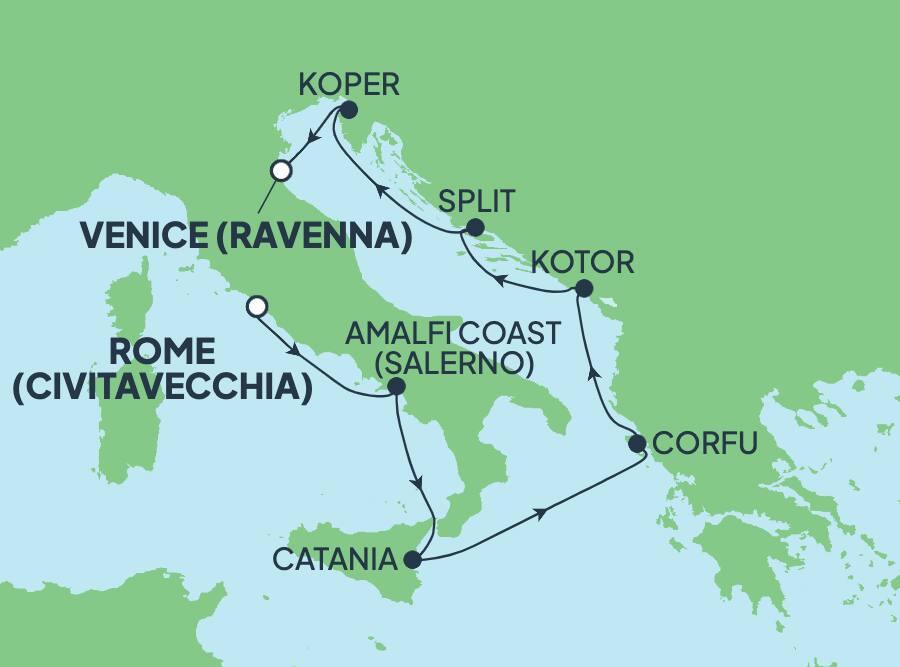 Retrocede en el tiempo en una navegación de 7 días por algunas de las costas más legendarias del Mediterráneo. Pasea por las calles adoquinadas de la ciudad medieval de Salerno antes de dirigirte al campo para una degustación de aceites de oliva y vinos locales. En Corfú, disfruta de un paseo por carreteras serpenteantes bordeadas de limoneros hasta el impresionante Palacio Achilleion del siglo 19. Luego sigue las fachadas de piedra caliza de Istria a través del casco antiguo de Koper, el corazón histórico de la costa de Eslovenia, que seguramente capturará el tuyo.