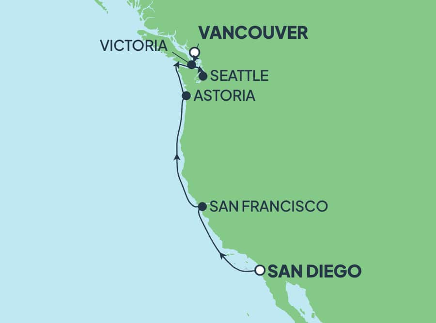 Paisajes asombrosos, una cocina deliciosa y famosos lugares históricos te esperan en tu aventura a bordo del Norwegian Jade. En Ensenada, emprende una aventura en jeep y recorre pueblos idílicos, los fascinantes paisajes de la Baja California y las bodegas locales para brindar por unas vacaciones inolvidables en el paraíso. Con noche en San Francisco, tendrás bastante tiempo para vivir todo lo que la Ciudad Dorada tiene para ofrecer, desde la infame prisión situada en la isla de Alcatraz hasta el delicioso Dim Sum en Chinatown y un tour guiado bajo la luz de las estrellas y más. Luego, disfruta de un tour guiado por el Fuerte Stevens del siglo 19 de Astoria o sumérgete en la belleza natural de la ciudad en un tour guiado en bicicleta por The Waterfront.