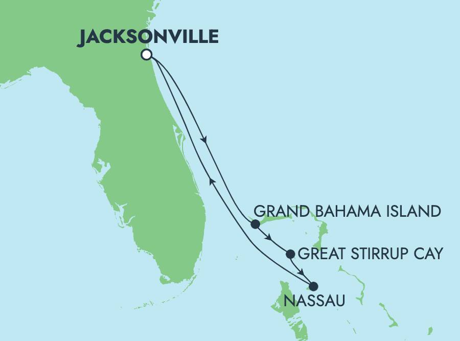 Todos nuestros cruceros a las Bahamas incluyen una visita de todo un día a Great Stirrup Cay, nuestro idílico paraíso isleño reservado solo para nuestros huéspedes. Pasea por playas de arena suave y blanca y disfruta de todas las actividades que tenemos para ofrecer. Haz buceo de superficie para ver maravillas submarinas, pasea en kayak en aguas cristalinas, diviértete en una aventura en WaveRunner®. Aquí la diversión nunca se acaba. Come algo en nuestro nuevo bufé en la playa de 8,500 pies cuadrados o simplemente relájate en tu cabaña privada frente al mar. Este paraíso tropical es solo para ti. Aprovéchalo.
