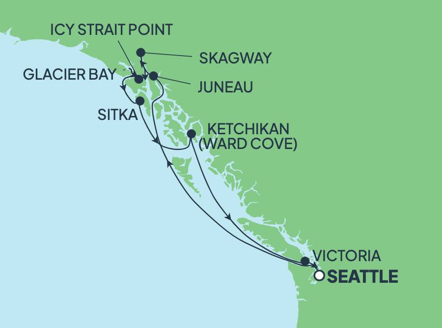 Embárcate en el Norwegian Joy y explora la majestuosa belleza de la última frontera. En Juneau, disfruta de unas vistas incomparables de los glaciares en el Parque Nacional de la Bahía de los Glaciares y navega en kayak por uno de los tantos cursos de agua protegidos de la zona. En Icy Strait Point, encontrarás el mayor pueblo nativo tlingit del estado y la tirolesa más larga del mundo. Luego, contempla las asombrosas montañas de Sitka y sus vistas panorámicas a orillas del mar, donde es probable que puedas vislumbrar animales autóctonos, como osos, ballenas y nutrias. En Ketchikan, explora el antiguo Bosque Nacional Tongass y observa el vuelo de un águila calva. O bien, saborea los mariscos frescos locales en un banquete de cangrejos de Dungeness.
