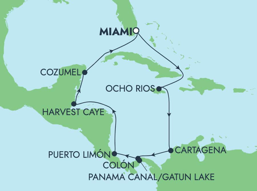 Sube a bordo del Norwegian Pearl y descubre tu nuevo rincón feliz mientras te das un chapuzón en el mar Caribe. Descubre la arquitectura colonial de Cartagena, las pintorescas plazas y los sitios históricos que ofrecen un panorama del impactante pasado de la ciudad, con los infames piratas y la Inquisición española. Visita el Canal de Panamá, una de las maravillas del mundo moderno, y relájate en una de las espectaculares playas de Colón. A continuación, disfruta de Harvest Caye, el destino estilo resort más importante del Caribe, y deslízate en tirolesa sobre aguas de color azul zafiro, para luego relajarte en una lujosa villa privada junto a la playa. O dirígete al área continental de Belice y disfruta de cada momento durante un tour por la plantación de cacao Akte'il Ha (¡no te pierdas la degustación de chocolate!).