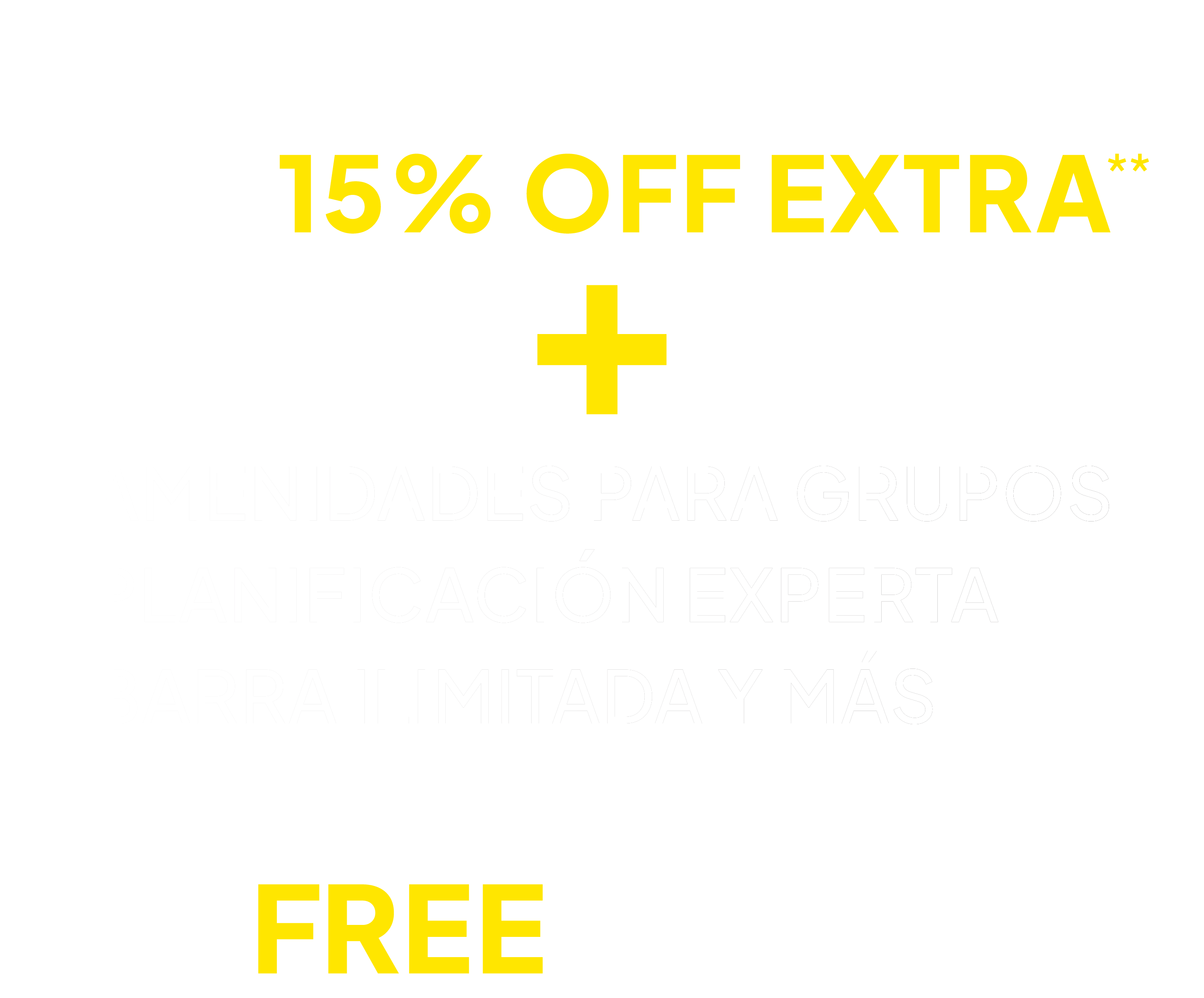 * El espacio para grupos es limitado y está sujeto a disponibilidad. Los descuentos para grupos no pueden combinarse con los de las categorías Sail Away ni con otras promociones que ofrezcan la posibilidad de que el 3.º y 4.º huésped viajen gratis.
