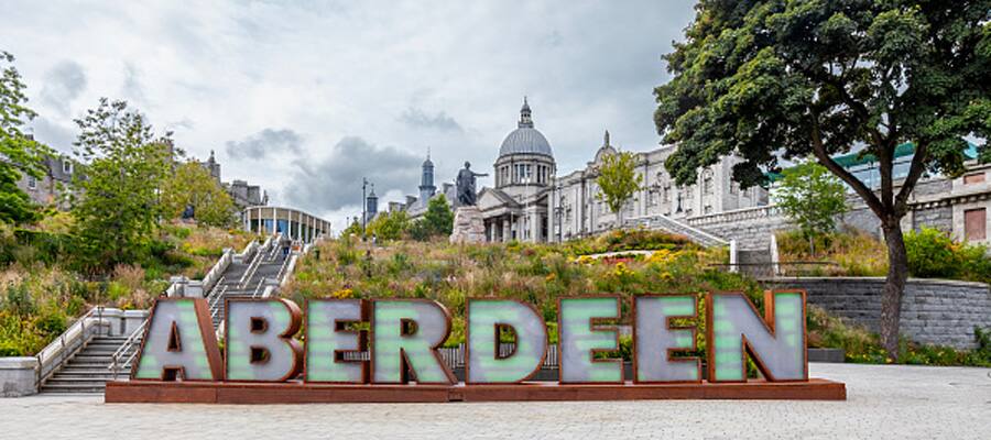 Aberdeen, known as the Granite City, features striking silver-grey buildings, historic architecture and shimmering streets, showcasing its iconic durable granite heritage.
