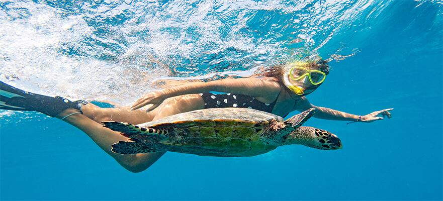 Snorkel the crystal-clear waters of Magens Bay, an idyllic spot where sea turtles and other marine animals are frequentl...