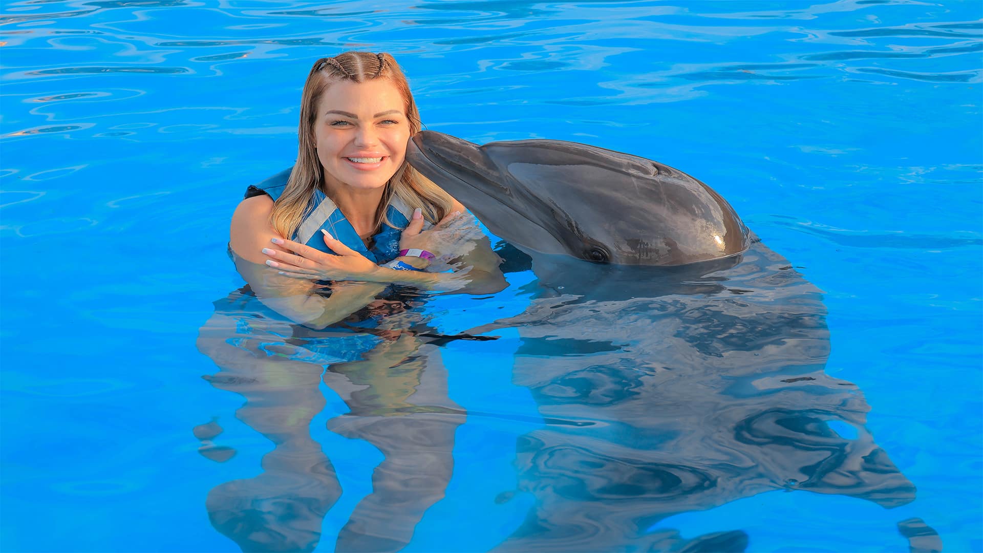 Enjoy a 40-minute dolphin experience, including a 10-minute educational briefing. Swim freely with the dolphins, with an optional mask to observe them underwater. Share a special kiss and hug with the dolphin in the pool and enjoy extended time to interact. Learn dolphin communication signals and their echolocation system, while experiencing the dolphins’ sensory sounds. A Marine Mammal Specialist will guide you through an informative session to enhance your understanding.