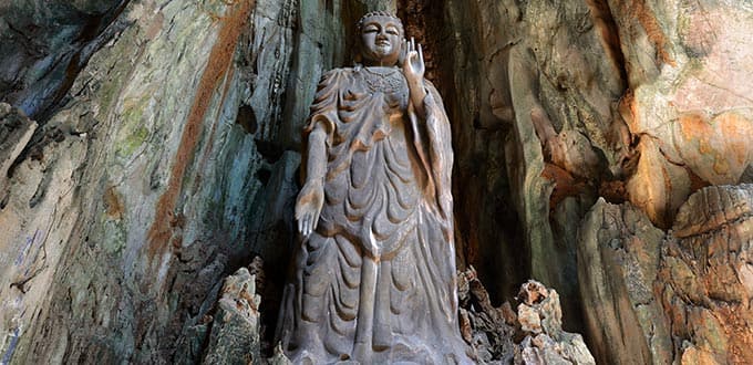 Proceed to Non Nuoc Stone Village, a marble carving village at the base of the mountain. Built in the 18th century, it is the home of master stone carving artisans. See the carvers at work with the white and rose-colored marble quarried from the mountain. Before returning to the ship, you'll make photo stops at Marble Beach, known as the beach used by US soldiers during the Vietnam War, and the Buddhist Temple at Fairy Mountain.
