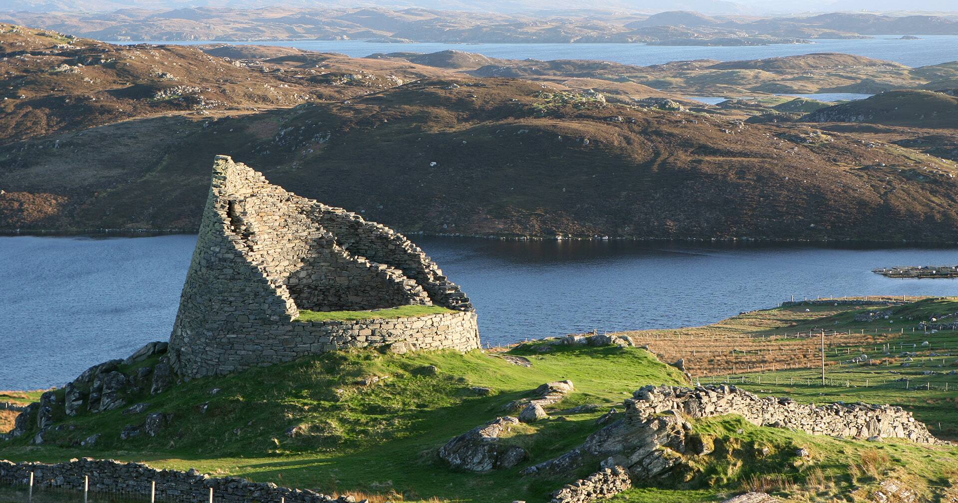Discover landmarks that showcase the history and culture of Lewis, largest and most populated of Scotland’s Western Isles. Shaped by its surrounding ocean and extreme climate, this island has been inhabited by stalwart folk for well over 6,000 years. On the west, you’ll visit Gearrannan – a coastal village of outstanding beauty where once-derelict homesteads are being painstakingly restored using traditional dry-stone masonry and communal thatching methods. During your visit, you’ll see how generations lived together in this small-plot farming community, in “blackhouses” – long, round-cornered structures uniquely designed to keep their residents warm and dry in even the most ferocious weather. Not far from this place, where Loch Carloway carves a deep path into this craggy coastline, you’ll stop to take in a 2,000-year-old circular fortified tower still clinging stubbornly to a hillside overlooking the sea. Well-known and exceptionally well-preserved, Carloway Broch still has partial walls 30 feet high, with interior galleries and stairways dramatically exposed. Before turning back inland across the moors, your circular Lewis itinerary will carry you yet further along Lewis’ western coast, a region at times pounded by the full unbroken force of the North Atlantic.