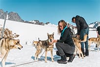 • Watch a team of dogs effortlessly pull a sled across the snow-packed glacier.