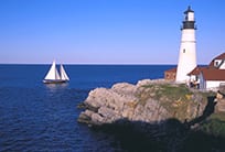 Enjoy a relaxing two-hour schooner sail, and a scenic drive of Portland with a visit to the historic Portland Head Light, the oldest commissioned lighthouse in the United States. Begin with a scenic drive through the quaint streets of the old port where street lanterns highlight a gracious mix of architectural styles. Once home of the warehouse district, the red brick buildings have been transformed into charming restaurants, pubs, unique boutiques, and galleries. Passing through the urban center, see Portland’s new arts district, as well as the thriving commercial and business districts. Situated just outside the city center and along the beautiful rocky coast of Cape Elizabeth is Fort Williams, the site of the America’s oldest lighthouse. First illuminated on January 10, 1791, Portland Head Light has since stood at the gateway to the harbor for mariners traveling Maine’s perilous coast. A short photo stop is made here. You'll return to Portland to board an authentic Maine built, wooden schooner for a leisurely sail on Casco Bay. The schooners are the ideal way to experience the beauty of Maine’s rugged coastline. Join the crew as they hoist the sails, take command at the ship’s wheel, or simply relax and enjoy the scenery as you ply the calm waters. Under full sail you’ll glide past the bustling waterfront, secluded islands, historic forts and lighthouses, your guide will point out the sites along the way.