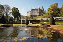 • An elegant white-stone chateau, distinct from typical dark Scottish castles, Set amidst lush formal gardens with sweeping views of the sea.