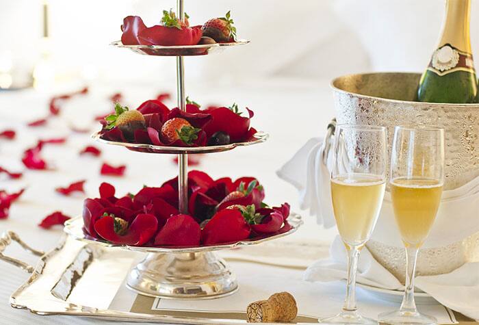 Desde vino espumante y fresas cubiertas de chocolate a tu llegada hasta una cena romántica para dos en Le Bistro con una botella de vino de cortesía: ¡este paquete añade un sabor a romance a tu viaje en crucero!